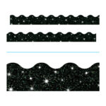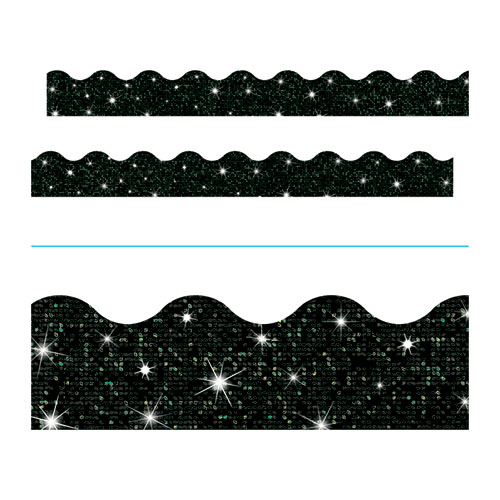Sparkling trims decorate classrooms and enhance learning environments. Pre-cut, scalloped borders add a touch of dazzling color. Durable trimmers are reusable. Coordinate with Sparkle Ready Letters®, sold separately, to complete the theme.