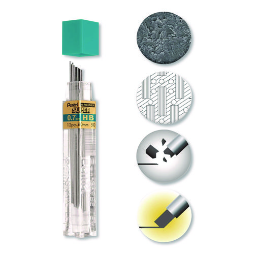 Super Hi-polymer Lead Refills, 0.7 Mm, Hb, Black, 12-tube