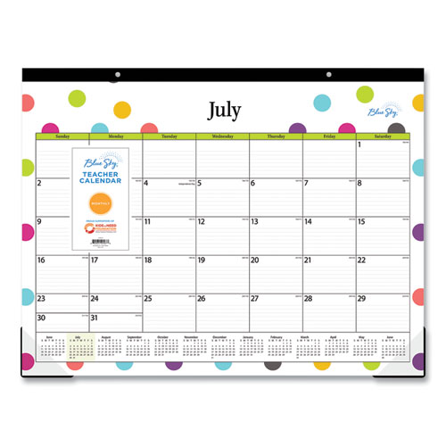 Teacher Dots Academic Desk Pad, 22 X 17, Black Binding, Clear Corners, 12-month (july To June): 2024 To 2025