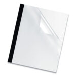 Presentation covers for thermal binding systems. Transparent front cover highlights title page. Elegant back cover in glossy white or linen-textured black. Compatible with most thermal binding systems.