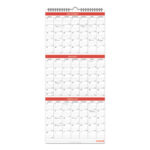 Three-month Wall Calendar, 12 X 27, White-red Sheets, 14-month: Dec 2024 To Jan 2026