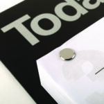 A calendar is a necessity in every workspace, and this dependable classic makes it easy to keep track of each day, one day at a time. Each sheet boldly displays either a single weekday or the weekend (with Saturday and Sunday combined). Extra-large black print on a bright white background delivers a high-contrast effect to help ensure just about anyone can check the date at a glance. Rigid, black vinyl backboard with eyelet simplifies hanging the calendar on cubical panels, room dividers, sheet-rock walls, plaster walls and more. Yearly refills available-use the handy backboard year after year.
