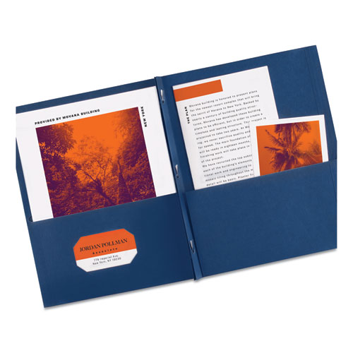 Enjoy all the protection of a report cover combined with the convenience of a two-pocket folder. That’s what you get with these Two-Pocket Folders. Each report cover is constructed of sturdy embossed paper for a classic look that speaks with elegant simplicity. Three durable fasteners hold up to 50 pages, so your report is secure and colorfully presented. Two interior pockets accommodate loose papers, allowing you to stow notes, brochures or other unpunched pages along with the report. With this folder, you’ll enjoy a look that’s attractive, efficient and professional.