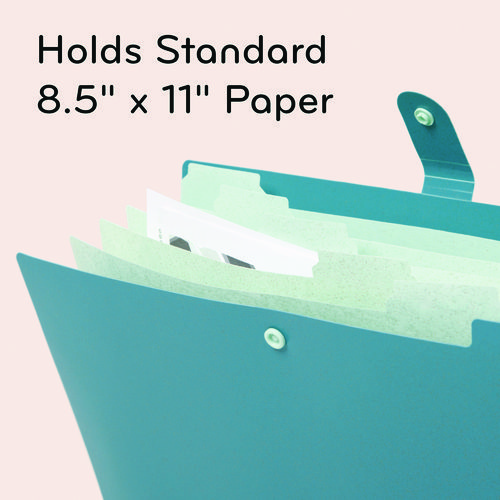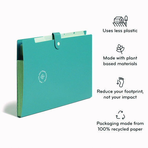 Introducing U Brands® three-pack Six Pocket U-Eco Poly Expandable Folder, a stylish and sustainable way to organize your documents. Made from tear- and water-resistant poly wheat straw material that is acid-free and PVC-free, these folders are designed to withstand everyday use. They come with 100% recycled paper labels and feature a built-in tabbed divider system for easy labeling. The set includes three unique colors for easy color-coding and expands up to 0.75″ to hold large documents and recycled snap button closure ensures security. Packaged in recycled drop-shippable packaging.