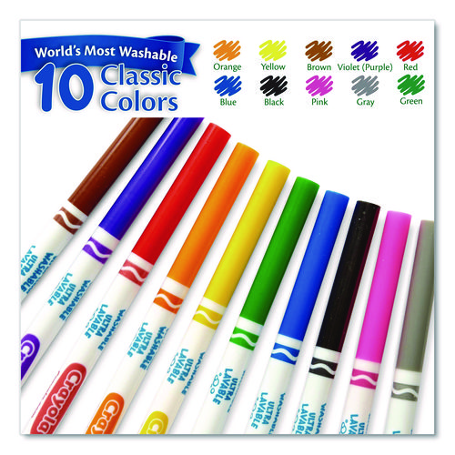 Keep color where it belongs with Crayola Ultra-Clean Washable Markers, the perfect choice for worry-free creativity. Featuring vibrant Color Max Ink technology, these markers deliver bold, long-lasting color without bleeding through the page, ensuring clean and beautiful results every time. Designed with parents and teachers in mind, the ultra-washable formula easily rinses off skin, walls, and most washable clothing, making cleanup a breeze. Ideal for classrooms, art projects, and home use, these markers provide bright, vivid colors that inspire creativity while keeping messes under control. Let kids explore their artistic side confidently with these reliable, easy-to-clean markers.