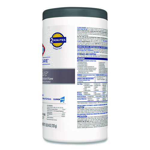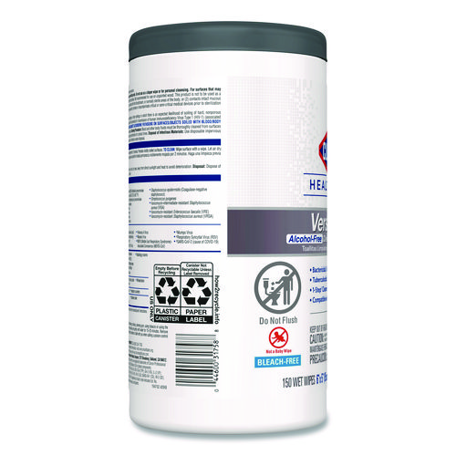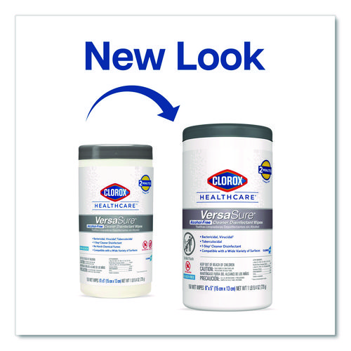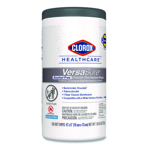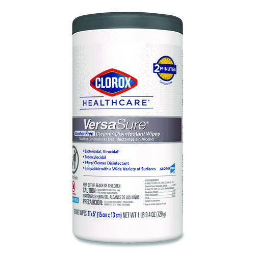 Clorox Healthcare VersaSure Cleaner Disinfectant Wipes kill over 40 pathogens quickly on a broad range of surfaces. These strong and durable clothlike wipes are your alcohol free solution to cleaning and disinfecting. VersaSure wipes are EPA registered to kill pathogens on hard surfaces in as fast as 30 seconds for most bacteria and viruses, including mumps, measles, MRSA and tuberculosis. These one step disinfecting wipes meet EPA efficacy testing requirements for hospital disinfection, making them great for daily use in your healthcare facility. Designed for patient and staff comfort, the alcohol free quat formula is made with no harsh chemical odors, fumes or added fragrances. The nonwoven wipe does not leave lint on surfaces, and the larger wipe covers more surface area with less effort. Intended for use in healthcare settings.
