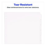 Stay on top of your documents and keep your important paperwork separated with ease using these Plain Tab Write-On Dividers. Identify each section in a flash thanks to nonlaminated tabs you can write on directly. A clear reinforced strip along the binding edge strengthens the three punched holes to resist tearing on your binder’s rings. Your documents will be organized and you’ll be in charge. Bulk packed for better value.