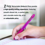 Looking for an everyday tool that doesn’t look or perform like one? The Z-Grip Ballpoint Retractable Pen delivers on all fronts: value, performance, comfort, and style. There’s no need to compromise on any of the attributes you like in your pens as the Z-Grip Retractable Ballpoint Pen features silky smooth easy-glide ink for a skip-less writing experience, a comfort ridged grip and a pocket clip for durability. Housed in a plastic barrel with a fun, fashionable look and retractable design, this ballpoint pen is the perfect choice for your home, school, workspace, small business, or traditional office. You’ll feel the difference when you write, but not at the cash register.