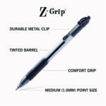 Looking for an everyday tool that doesn’t look or perform like one? The Z-Grip Ballpoint Retractable Pen delivers on all fronts: value, performance, comfort, and style. There’s no need to compromise on any of the attributes you like in your pens as the Z-Grip Retractable Ballpoint Pen features silky smooth easy-glide ink for a skip-less writing experience, a comfort ridged grip and a pocket clip for durability. Housed in a plastic barrel with a fun, fashionable look and retractable design, this ballpoint pen is the perfect choice for your home, school, workspace, small business, or traditional office. You’ll feel the difference when you write, but not at the cash register.