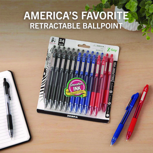 Z-grip Ballpoint Pen, Retractable, Medium 1 Mm, Assorted Ink And Barrel Colors, 24-pack