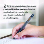 Looking for an everyday tool that doesn’t look or perform like one? The Z-Grip Ballpoint Retractable Pen delivers on all fronts: value, performance, comfort, and style. There’s no need to compromise on any of the attributes you like in your pens as the Z-Grip Retractable Ballpoint Pen features silky smooth easy-glide ink for a skip-less writing experience, a comfort ridged grip and a pocket clip for durability. Housed in a plastic barrel with a fun, fashionable look and retractable design, this ballpoint pen is the perfect choice for your home, school, workspace, small business, or traditional office. You’ll feel the difference when you write, but not at the cash register.