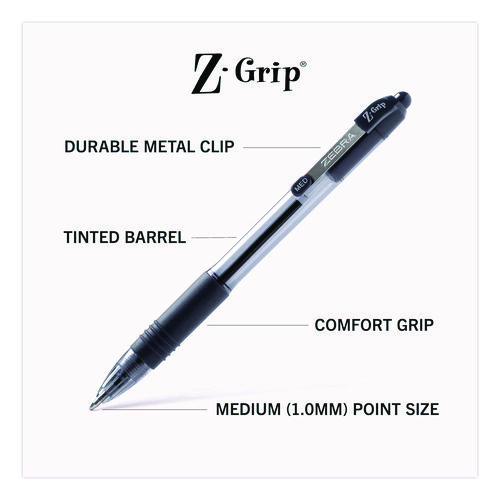Z-grip Ballpoint Pen, Retractable, Medium 1 Mm, Black Ink, Clear-black Barrel, 18-pack